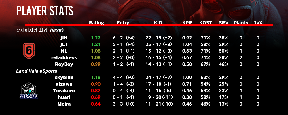 | 1 | Land Valk eSports | 15 | +12 |