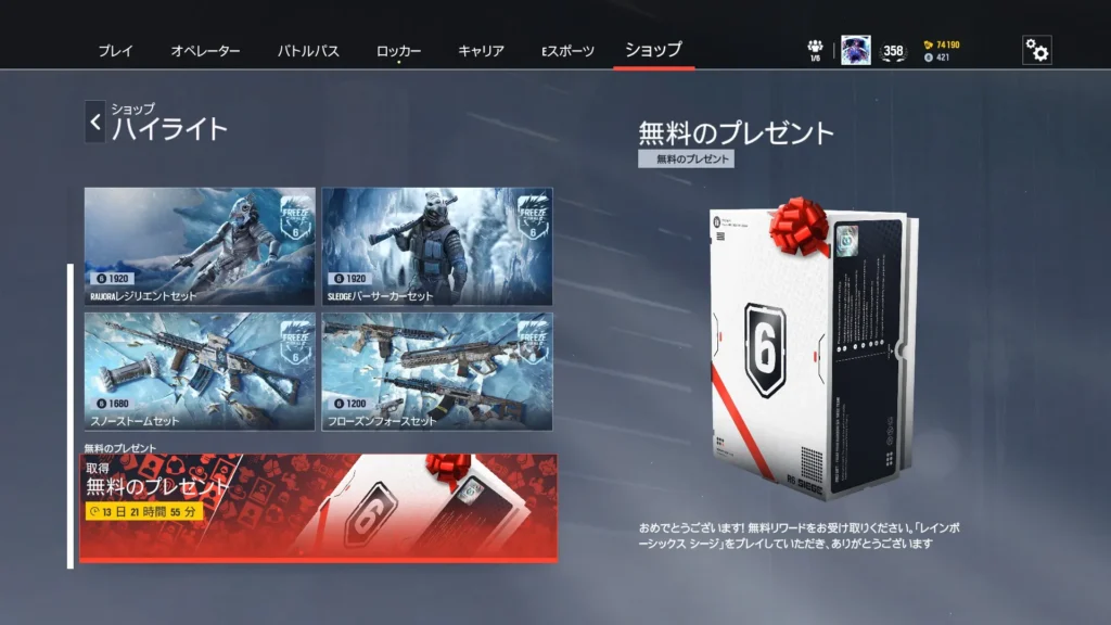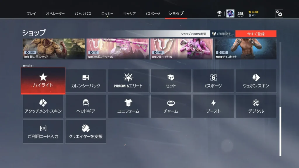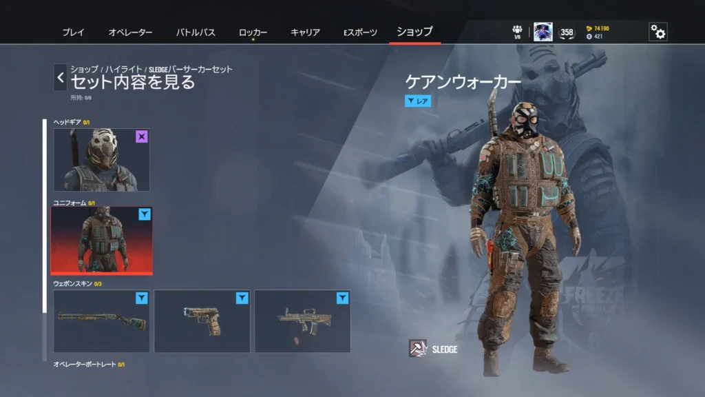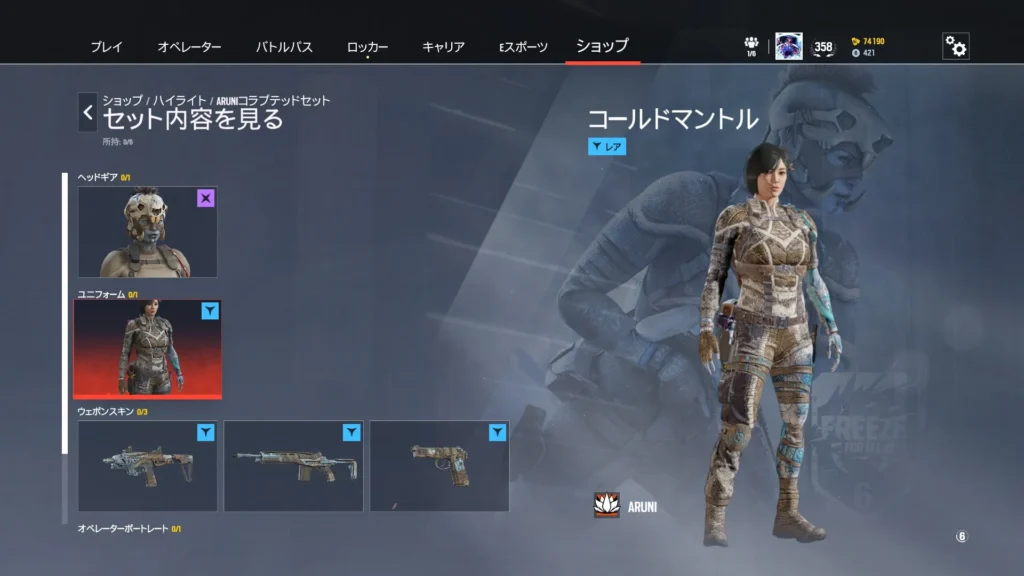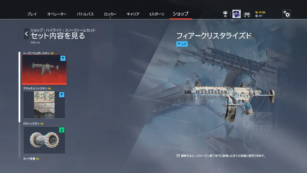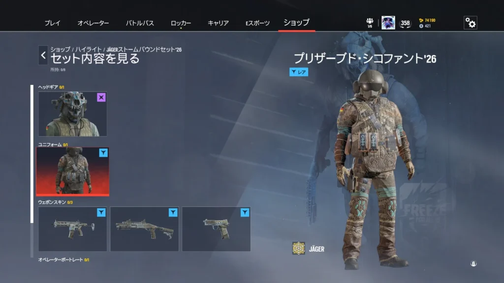 1パック300 R6クレジットもしくは12,500名声ポイントで購入可能です。